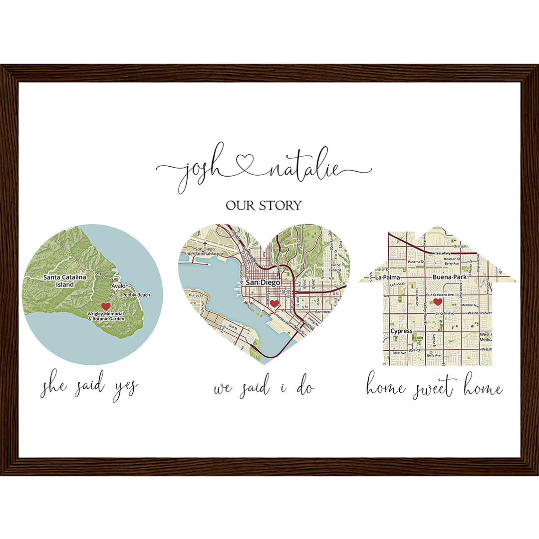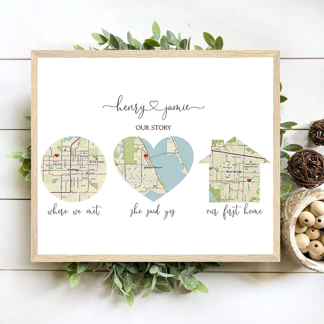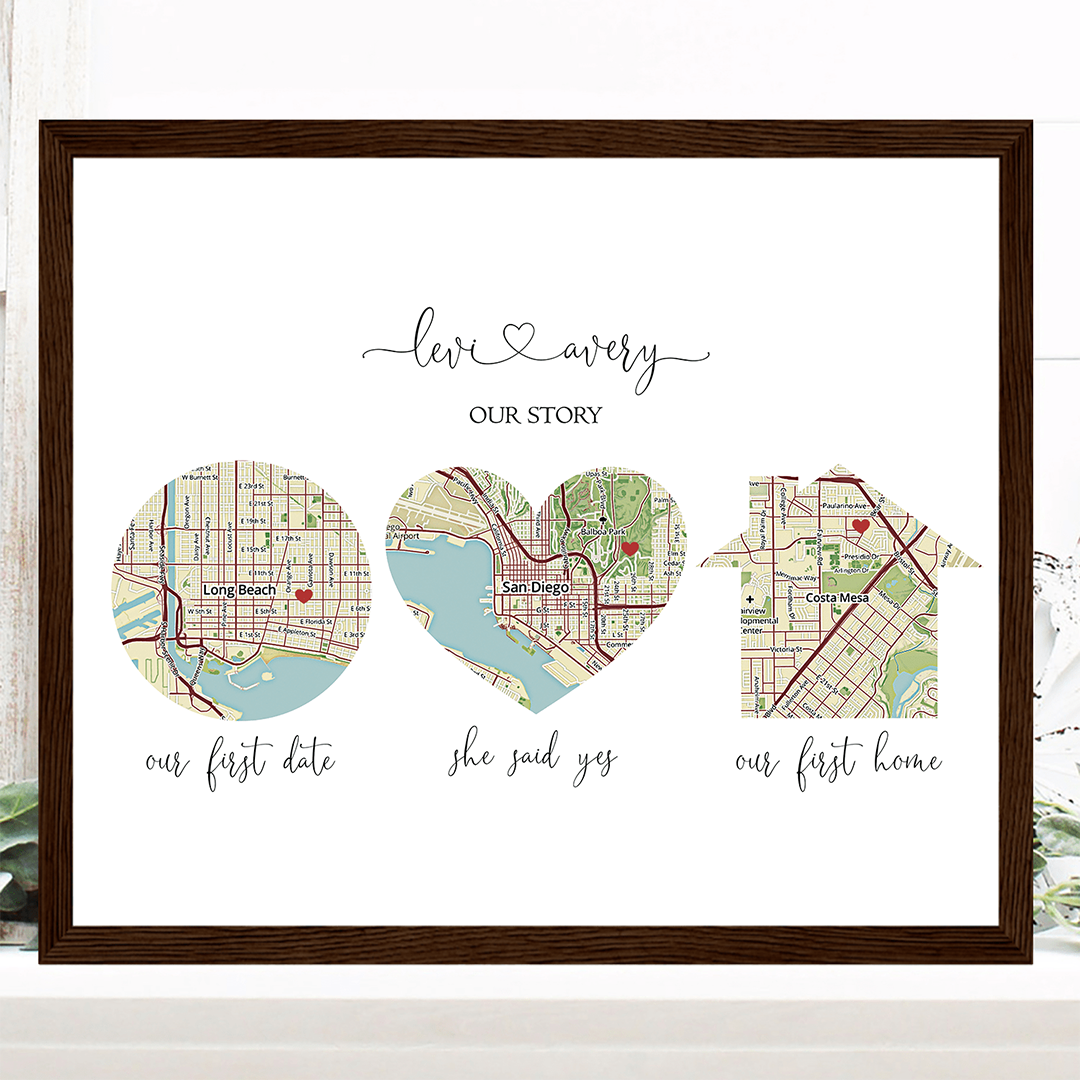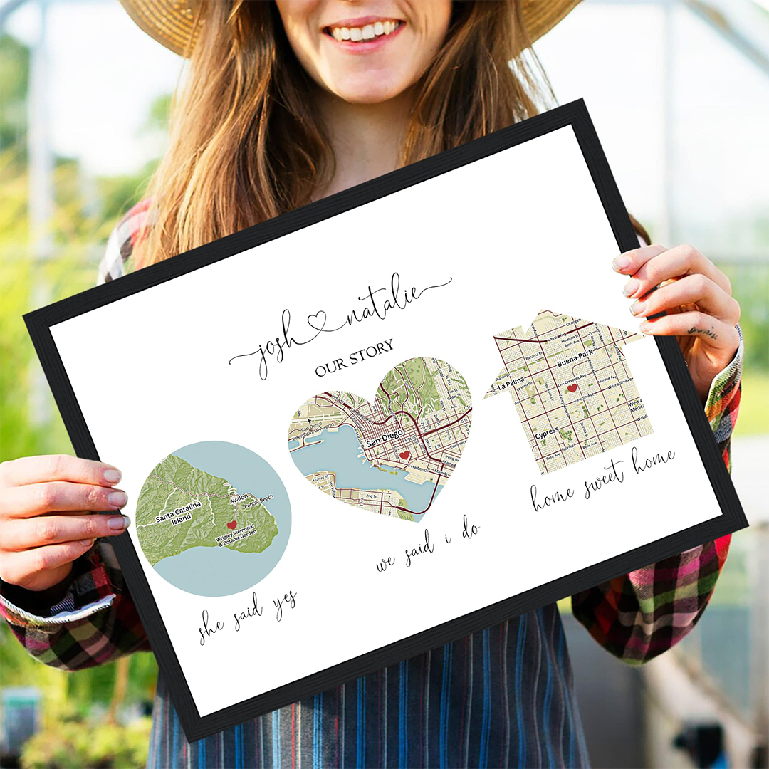 From the place you first met to where you said "I do" — every chapter deserves to be remembered. The Custom Story Map turns your most meaningful moments into timeless art. Whether it's your proposal spot, wedding venue, or the city where your story began, this piece captures it all.